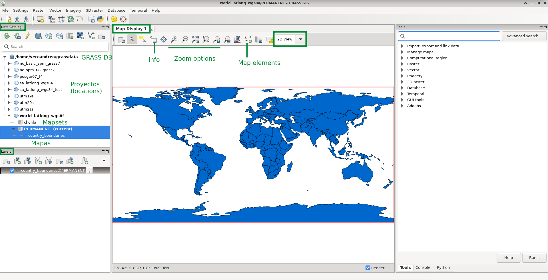 grassdata) puede ser local o remota, y permite configurar permisos especiales para cada mapset en un proyecto (location).En GRASS 8, se elimina la pantalla de inicio…