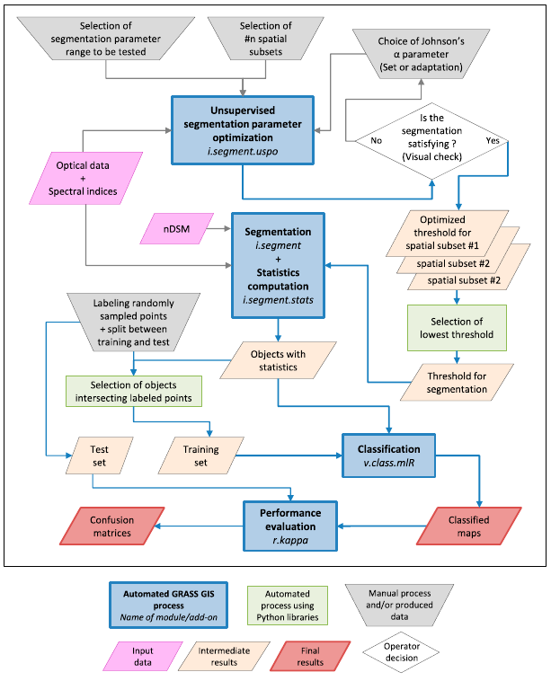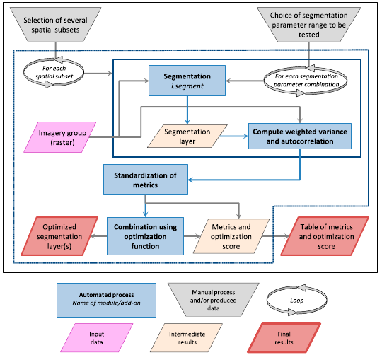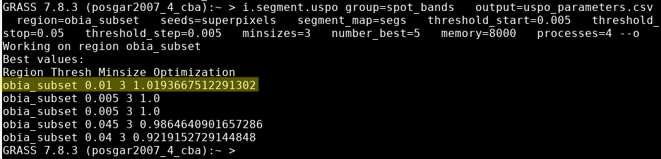 Para áreas extensas, i.segment.uspo se puede usar para segmentar automáticamente tiles pequeños, cada uno con un parámetro optimizado